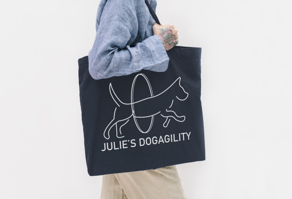 Logo showing a dog jumping through a hoop. Created for a friend who is active in the field of dog agility.